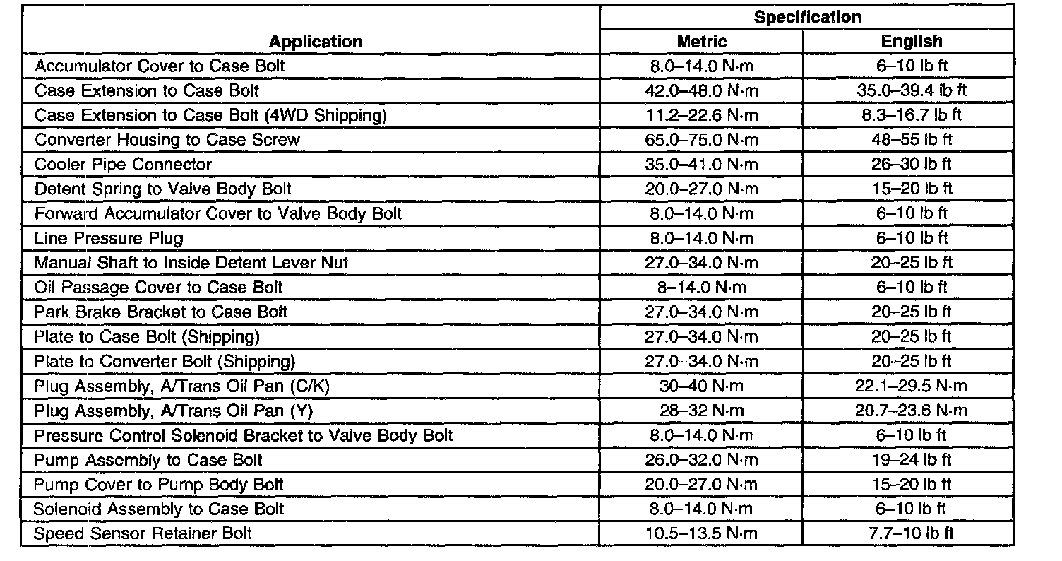 Fastener Tightening Specifications (Unit Repair)