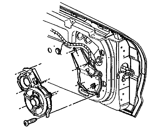 6. Install the uppermost screw mounting the radio speaker assembly to the door.