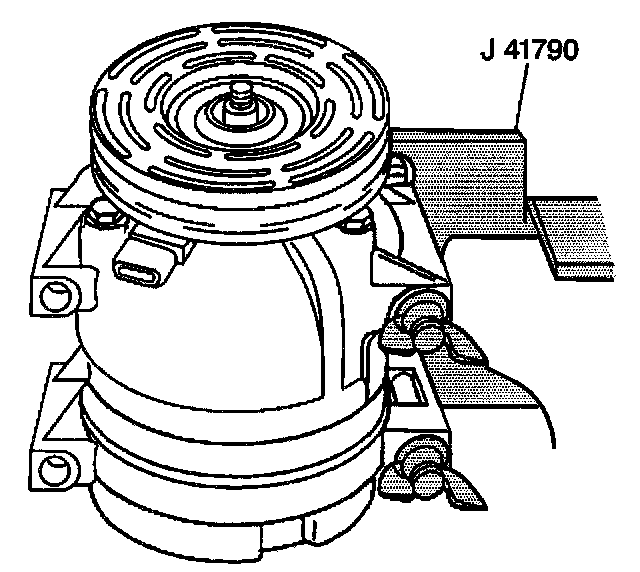 2. Clamp the compressor holding fixture, J41790 in a vise and attach the compressor to the J 41790.