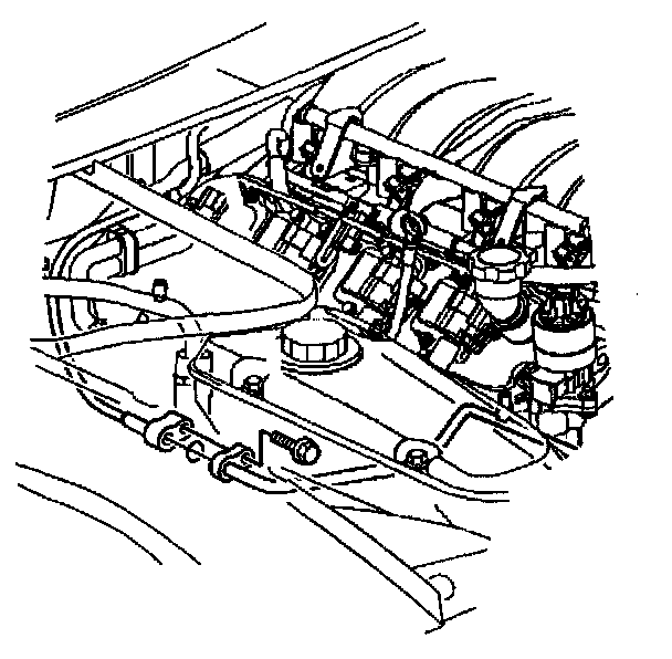 8. Install the evaporator tube - front to evaporator tube - rear retaining bolt.