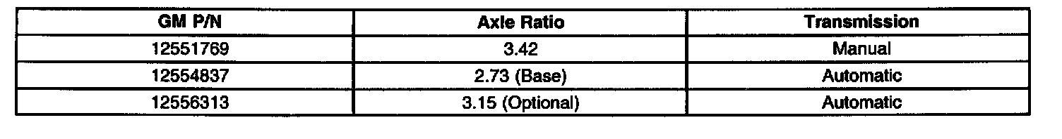 Available Axle Ratios