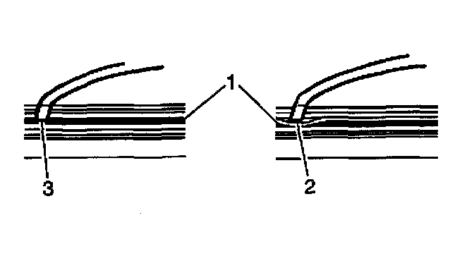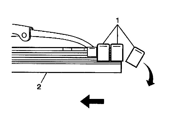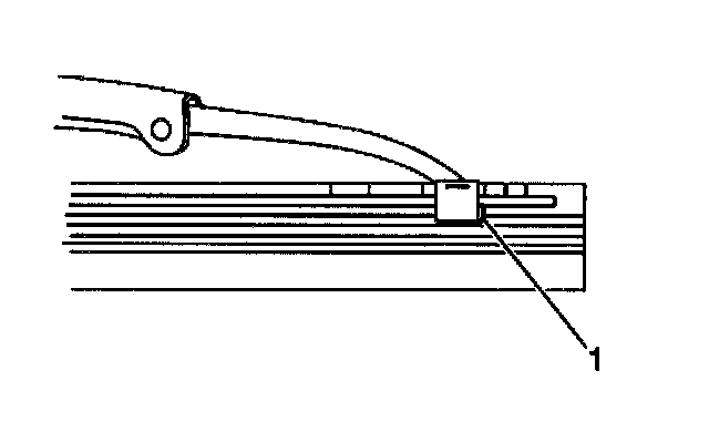 1. Starting at the heel end of the wiper blade slide the wiper blade element, notched end last, into the wiper blade claw sets (1). The plastic retainer caps will be forced off as the element is fully inserted.