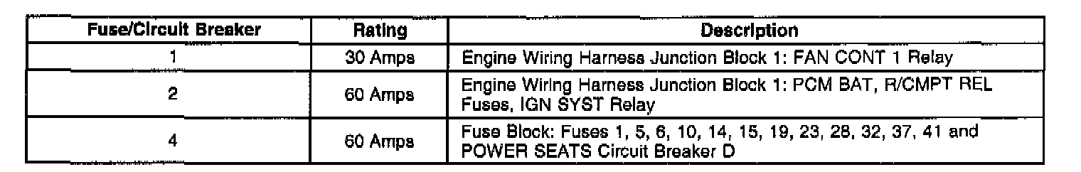 Engine Wiring Harness Junction Block 1 Maxifuse (R) Application Table: