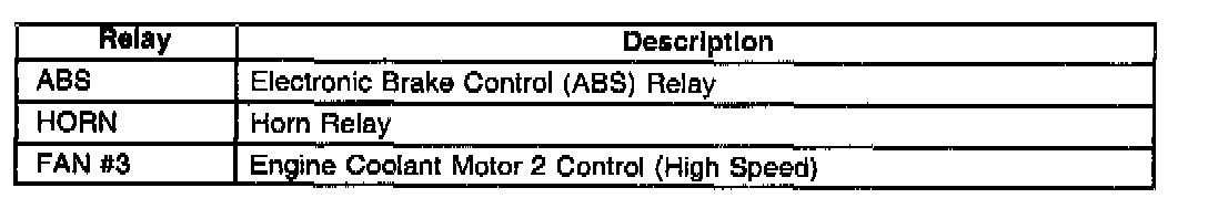 Engine Wiring Harness Junction Block 2 Relay Application Table: