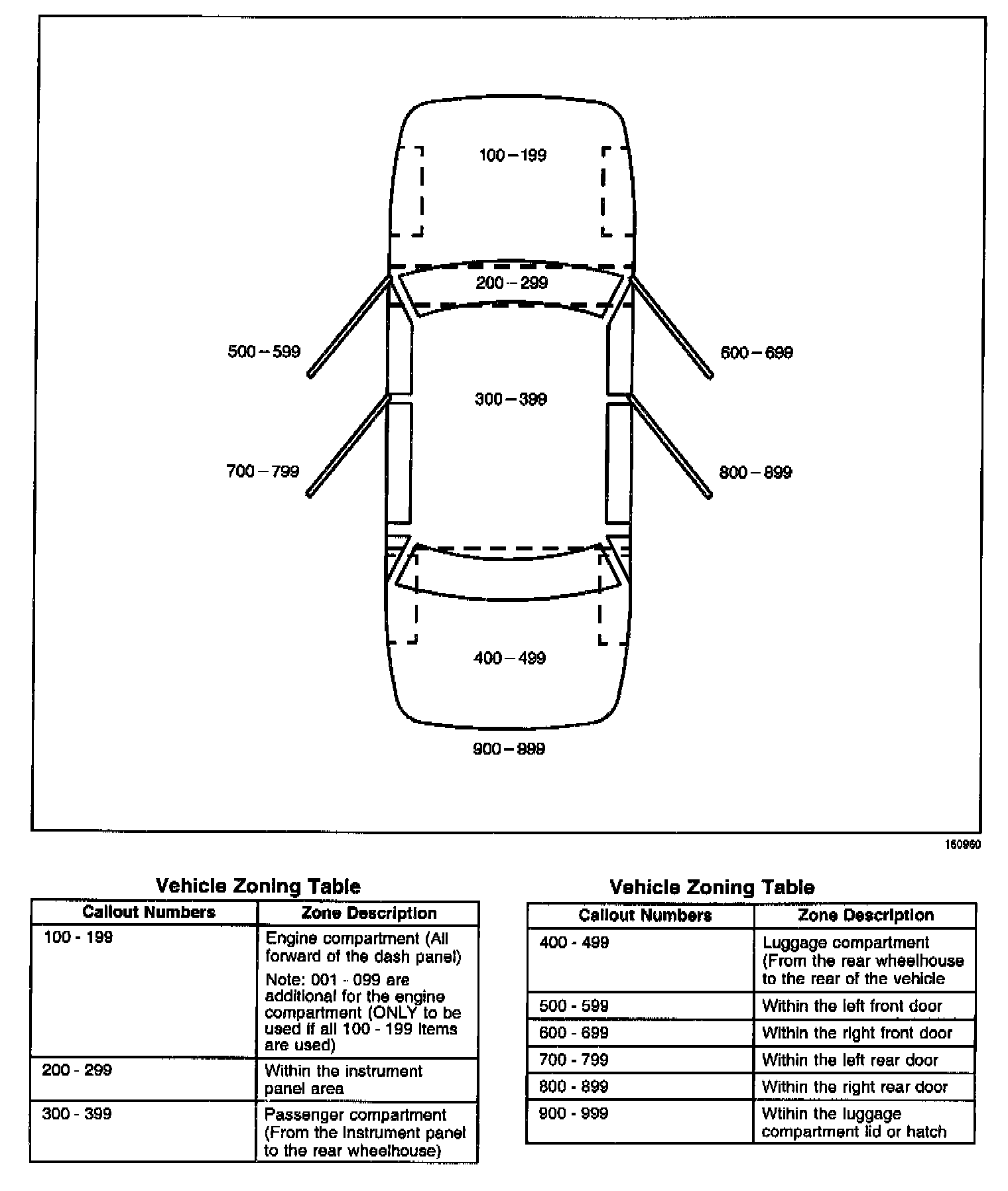All grounds, in-line connectors, pass-through grommets, and splices have identifying numbers that correspond to where they are located in the vehicle. The following table explains the numbering system.