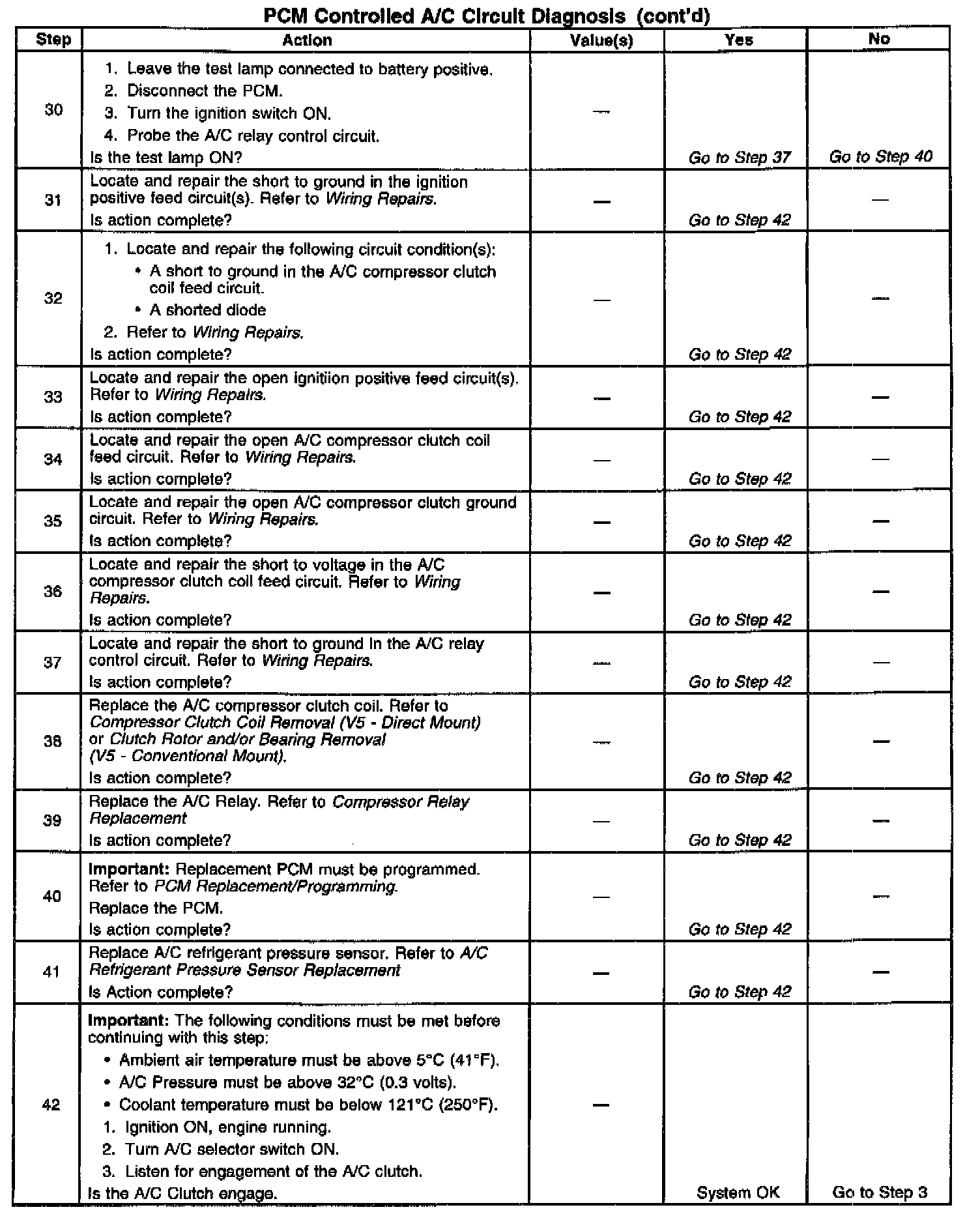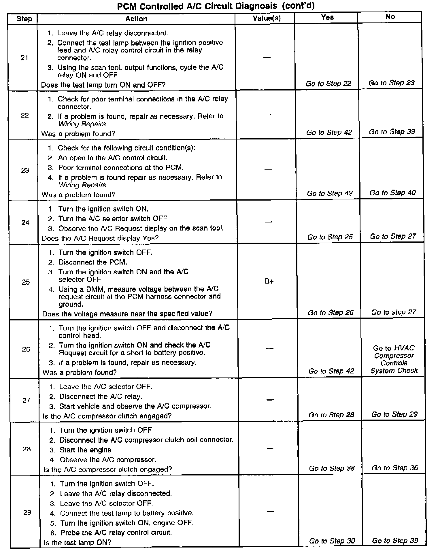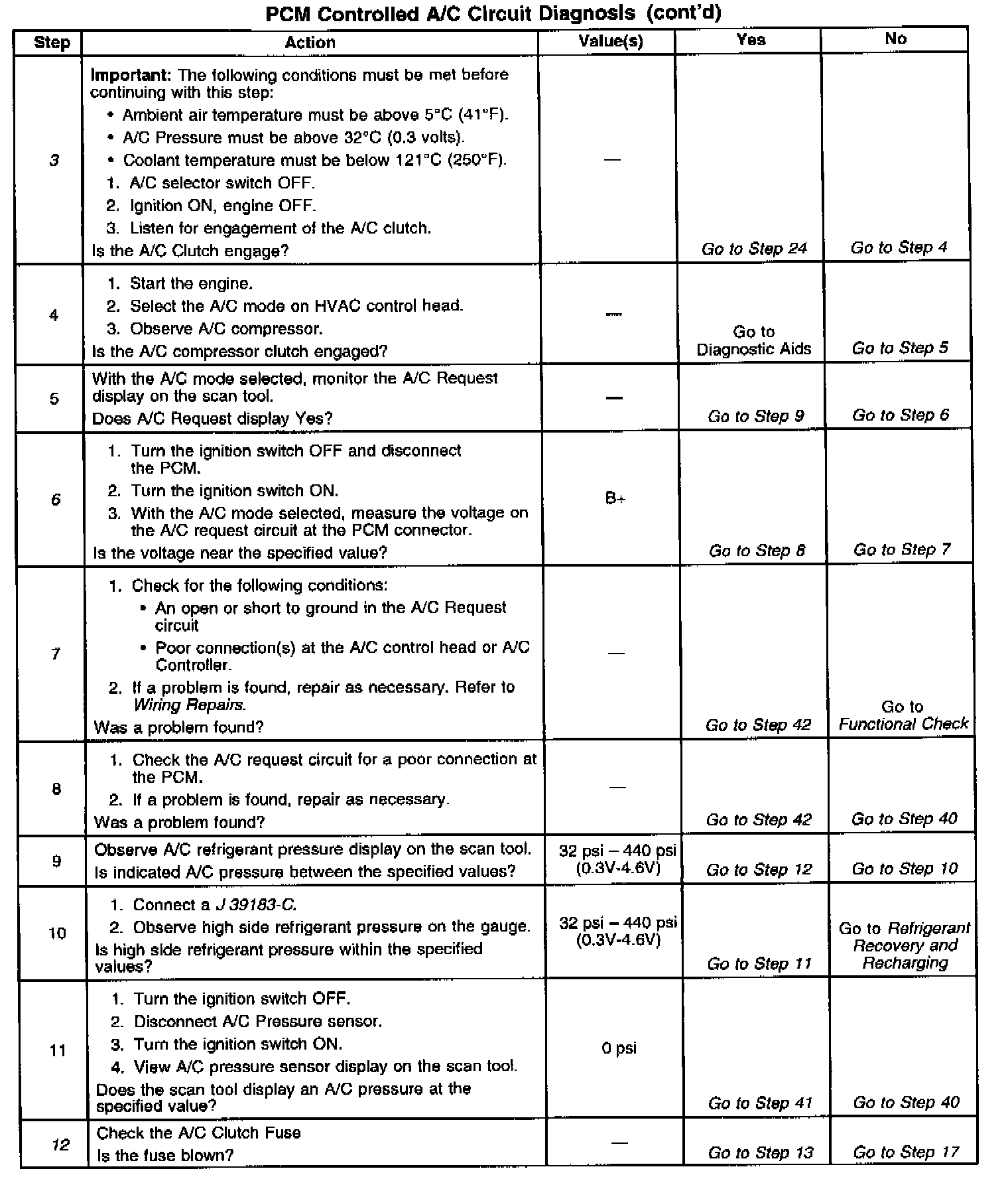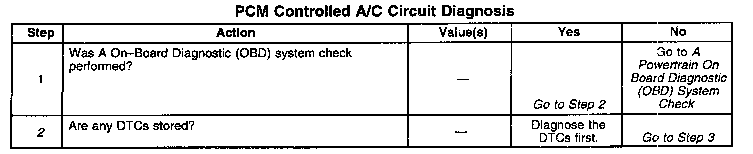 2. Stored Diagnostic Trouble Codes (That may not illuminate the Malfunction indicator Lamp) may disable the A/C compressor. This Diagnostic Table may lead to improper diagnosis and replacement of good parts if Diagnostic Trouble Codes are present.
