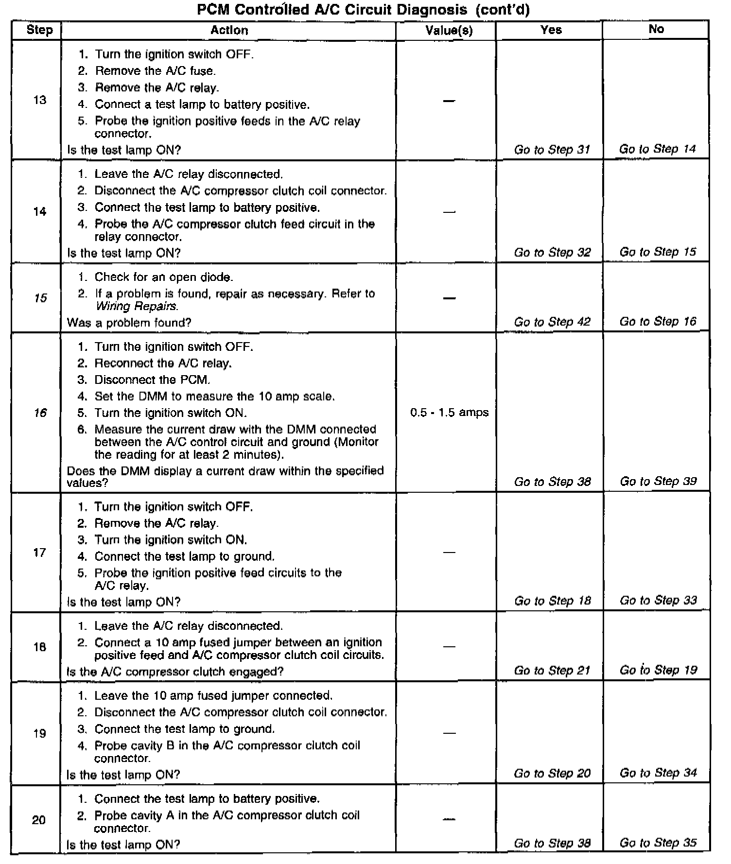 16. Determines whether the A/C relay current draw is the reason for the blown A/C fuse.