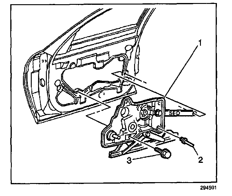 Coupe and sedan front doors use a cross arm regulator.Removal Procedure