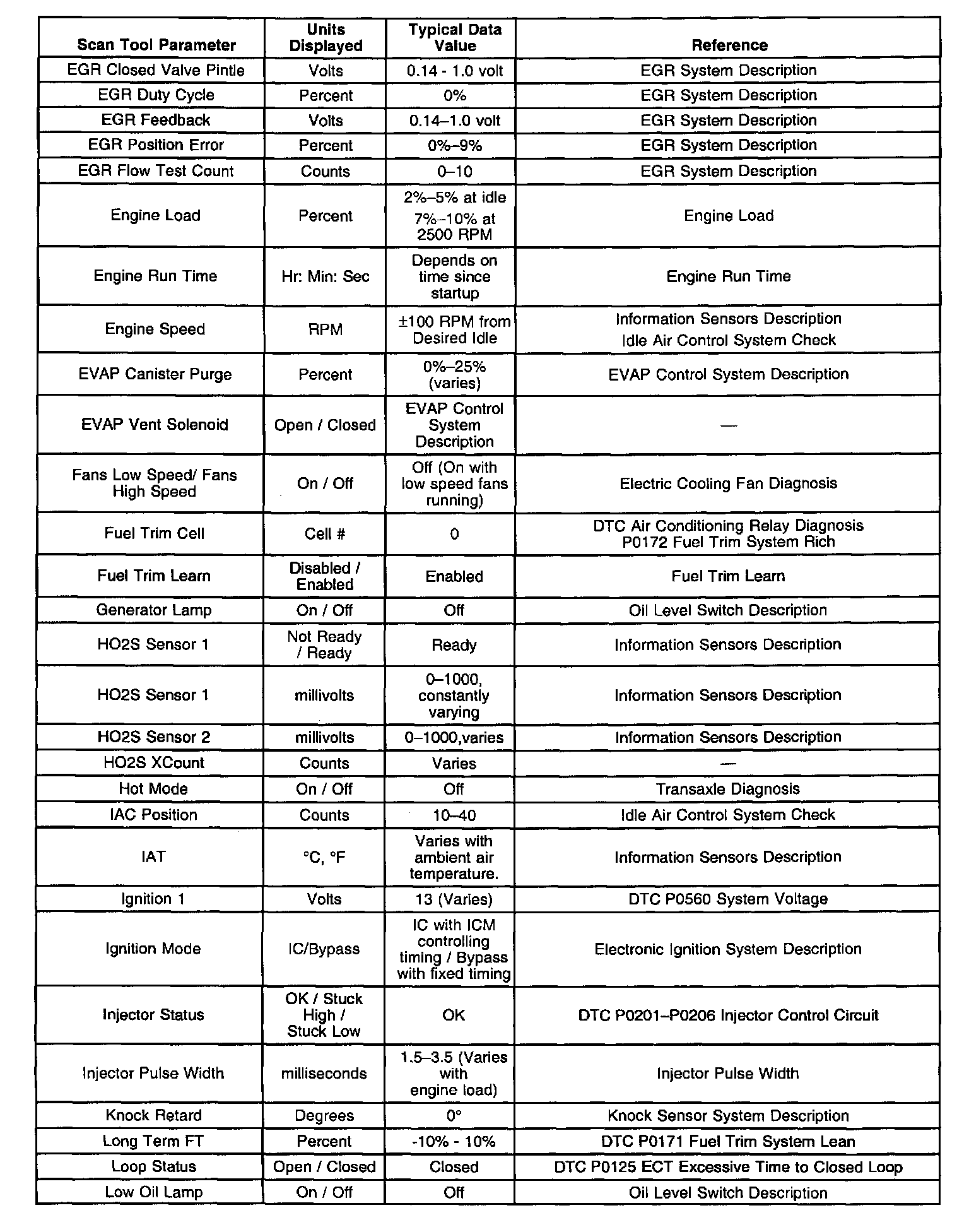 Scan Tool Data List - Powertrain System