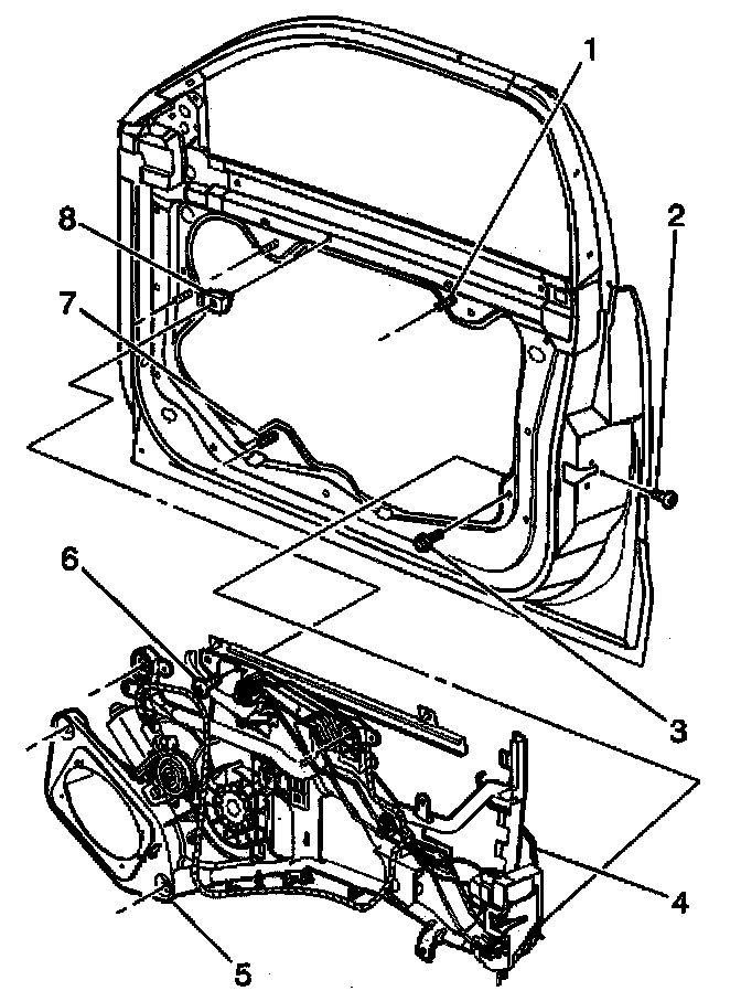 7. Remove the door locking system module (5) from the door.