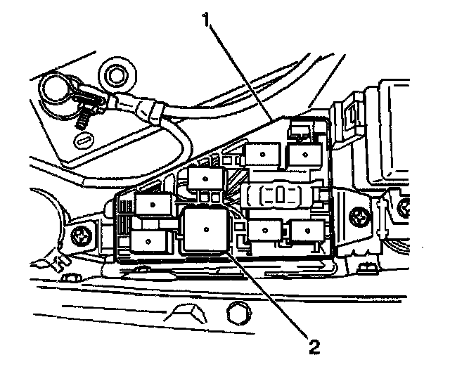 1. Install the Electronic Brake Control Relay (2) into the underhood electrical center (1).