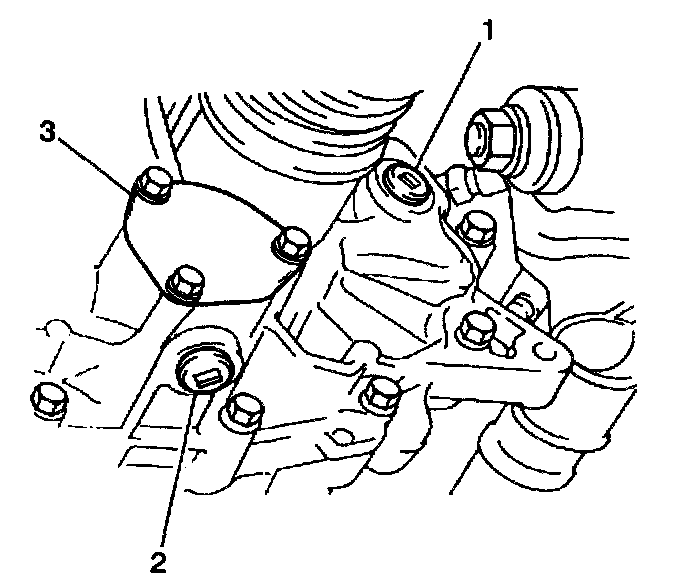 6. Apply GM P/N 12346004 or the equivalent to the threaded portion of the transaxle drain plug (2).