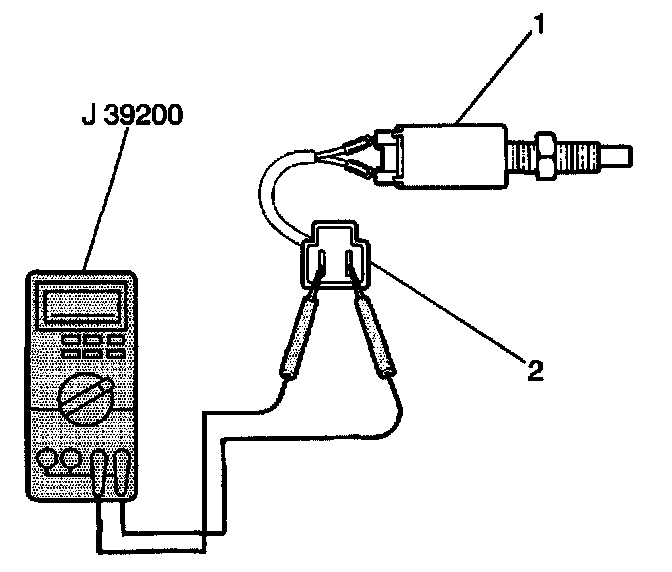 5. Adjust the probes of J 39200 in contact with both leads of the CPP switch electrical connector (2).