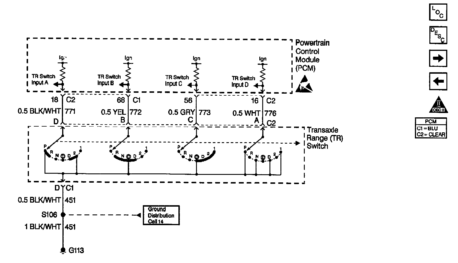 Automatic Transmission Controls Schematics (Cell 39: Transmission Range Switch: PCM Inputs)