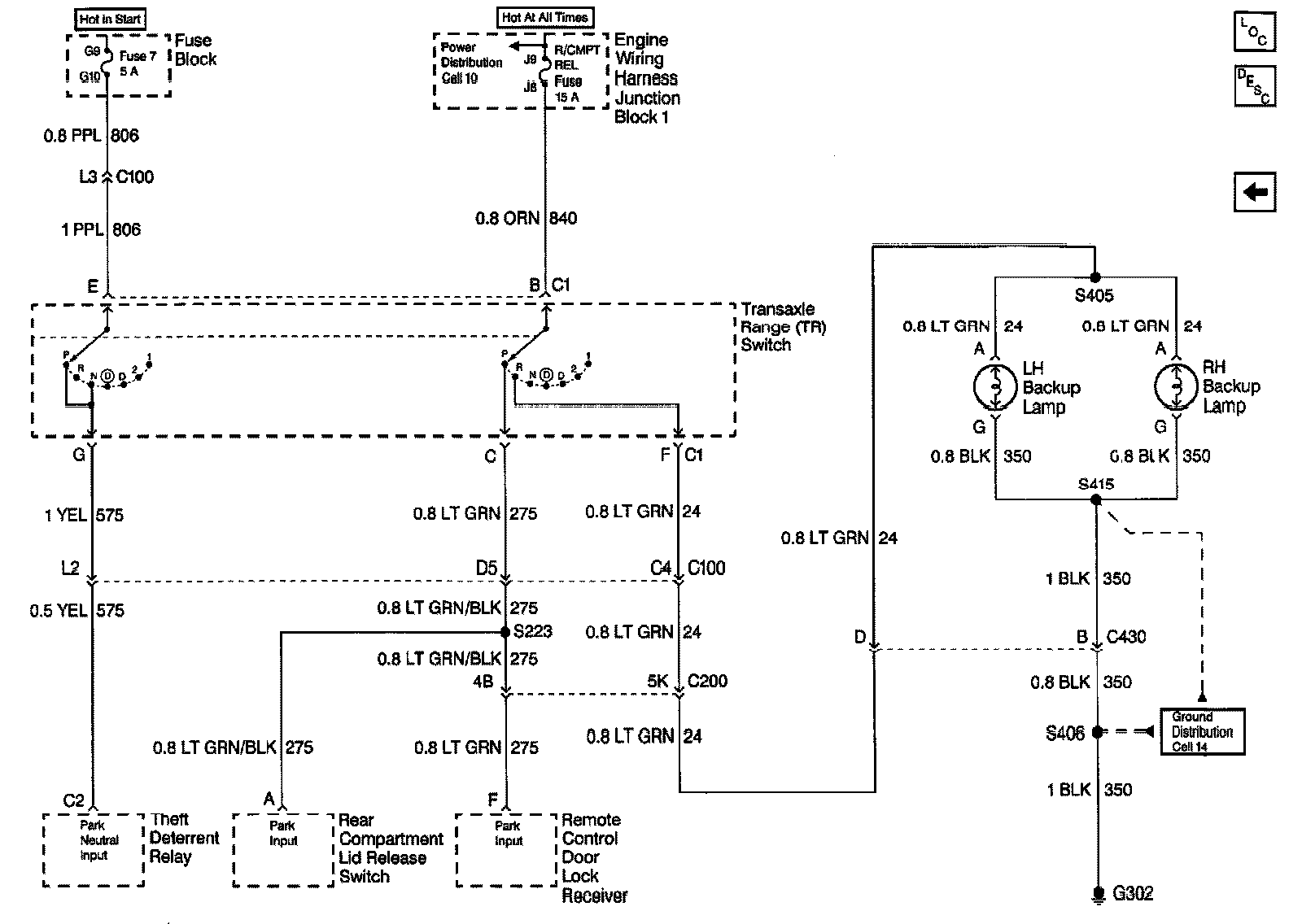 Automatic Transmission Controls Schematics (Cell 39: Transmission Range Switch: Backup Lamps and Theft Deterrent)