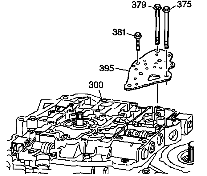 2. Install the control valve body bolts (375, 379 and 381) that mount the fluid pressure manual valve position switch to the control valve body (300).