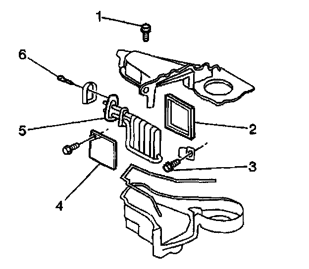 1. Install the NEW A/C evaporator (6).