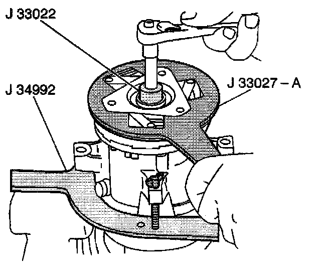 10. Hold the center screw of the J 33013-B with a wrench.