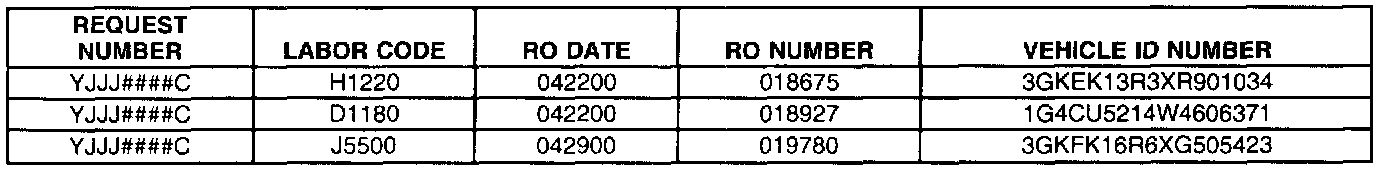Shown are R.O. Only requests which should be returned to the requestor via the post office using the mailing label provided. No R.O. Only requests should be returned to the Warranty Parts Center.