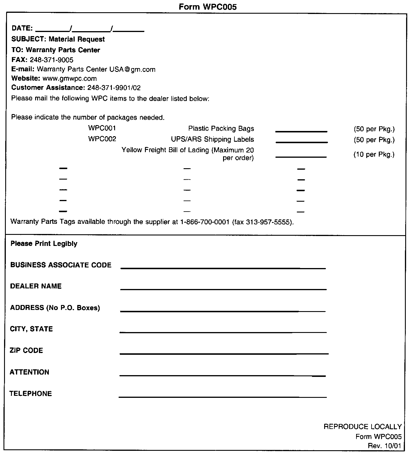 Shown are R.O. Only request which should be returned to the requestor via the post office using the mailing label provided. No R.O. Only request should be returned to the Warranty Parts Center.