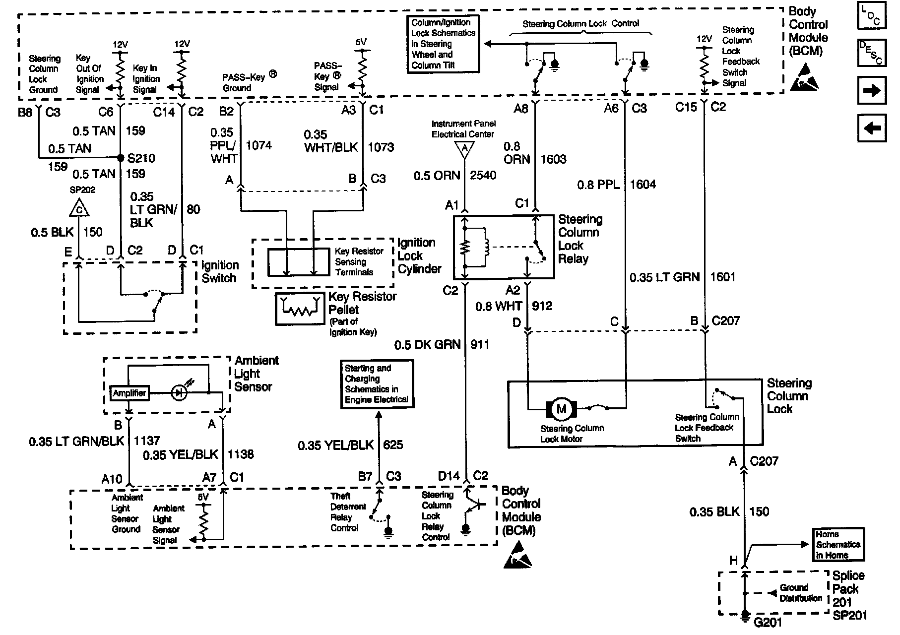 Body Control Module Schematics: Ignition Switch, Steering Column Lock Control And Ambient Light Sensor: