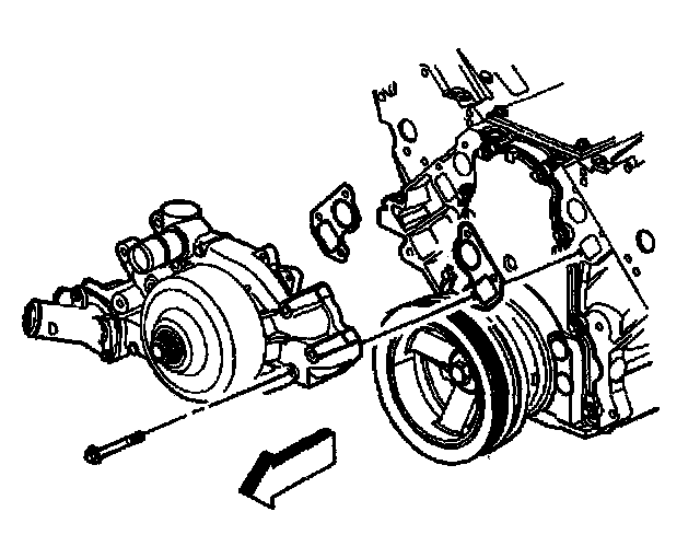 6. Remove the water pump, bolts and gaskets. Refer to Water Pump Replacement in Cooling System.