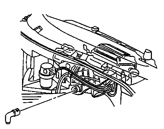 14. Remove the evaporator and HVAC module drain tube from the HVAC module.