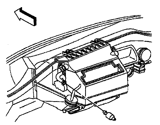 37. Install the evaporator and HVAC module drain tube to the module. Orientate the drain tube to contact the dash panel as shown (1).