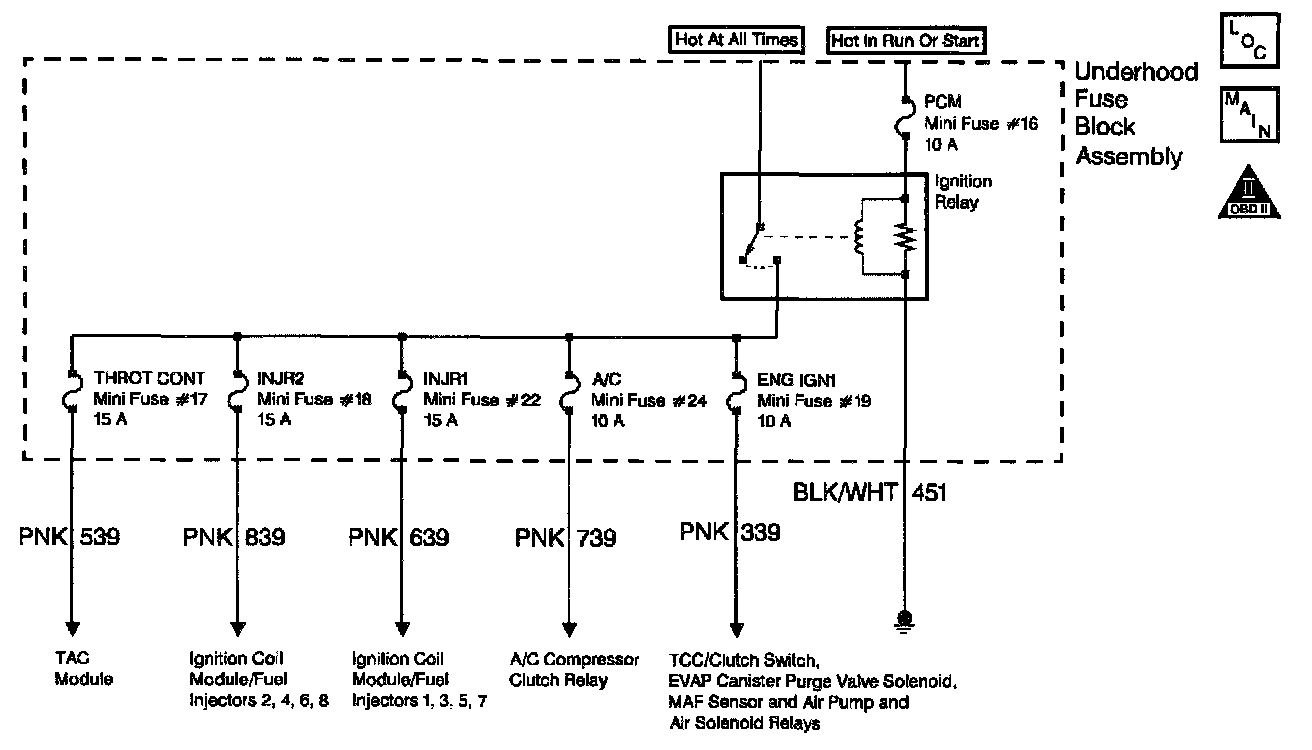 The IGN relay supplies a voltage to various fuses. The IGN relay is located in the underhood Electrical Center. The following components are powered by the IGN relay: