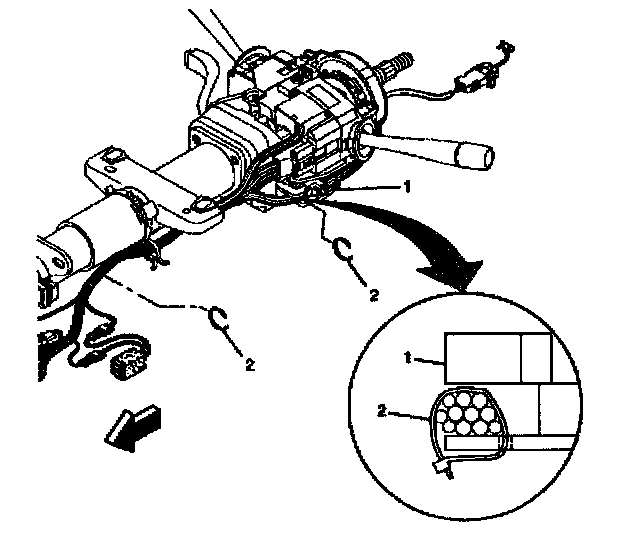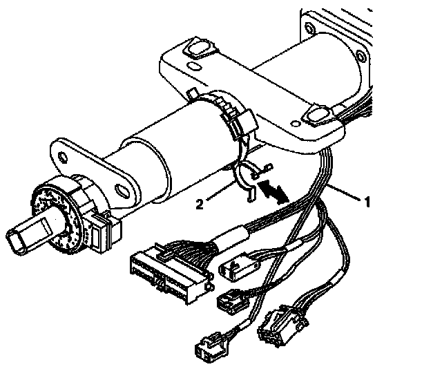 5. Install new wire harness straps (2) to the steering column assembly (1) and the column.