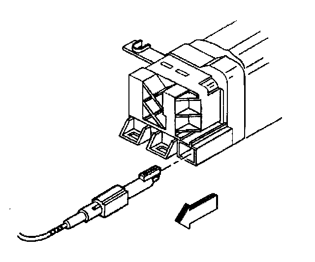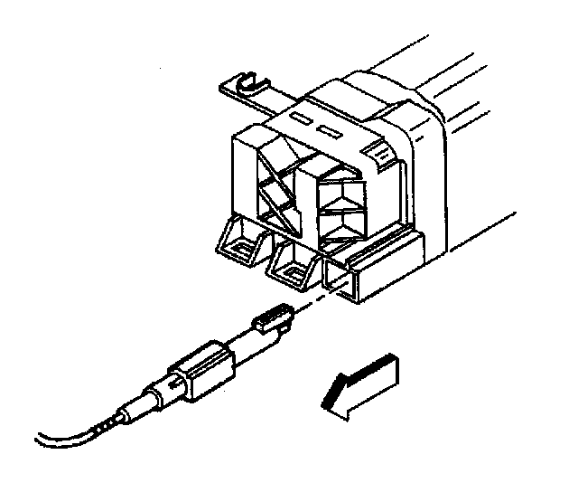 Insert the cable into the ignition switch slot, then push in to lock the retaining tab.