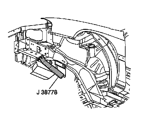 2. Use J 38778 to remove the push-in retainers holding the engine splash shield to the lower flange of the engine compartment side rail.