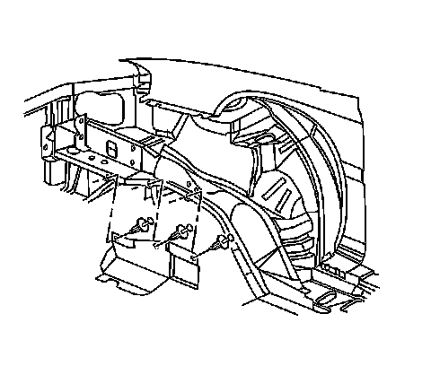 1. Install the engine splash shield to the lower flange of the engine compartment side rail.