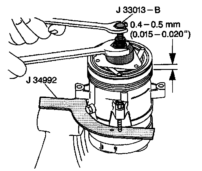 9. Back off the body of the J 33013-B in order to allow the center screw to be threaded onto the end of the compressor shaft.