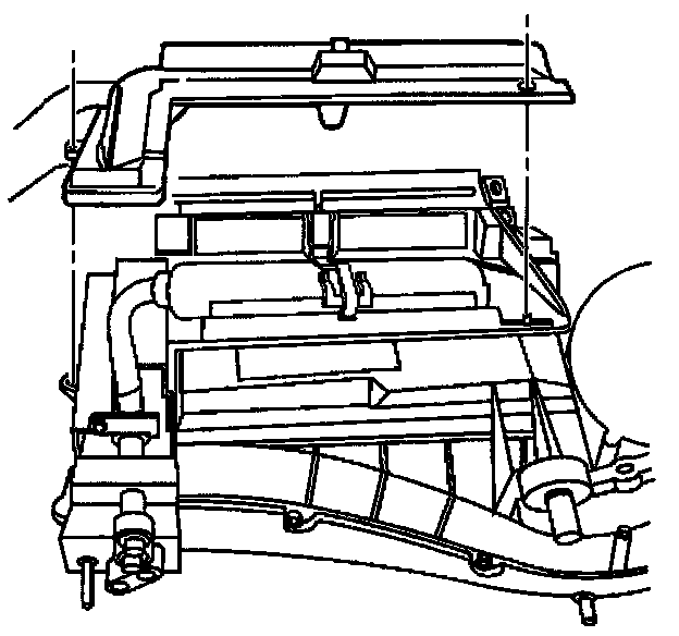 1. Install the heater core side seals (1) to the HVAC lower case.