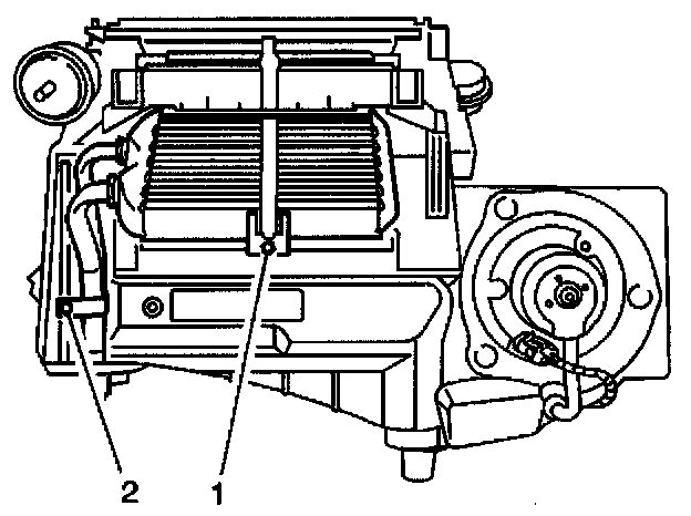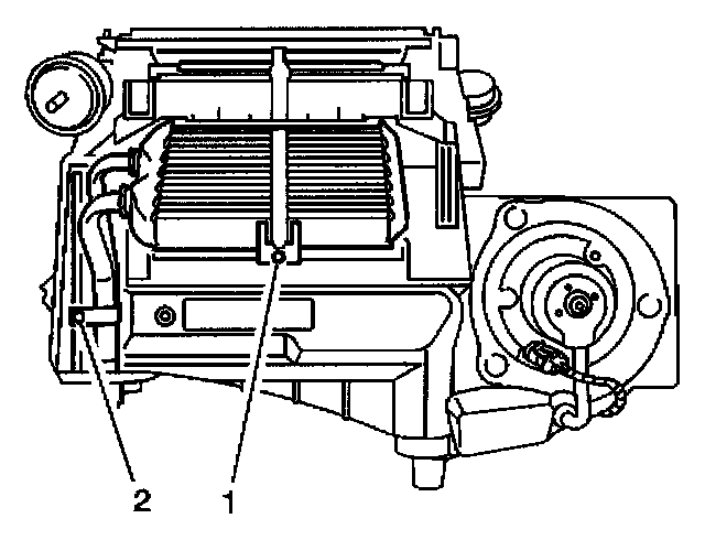 21. Remove and discard the heater core upper seal (2) from the HVAC lower case.