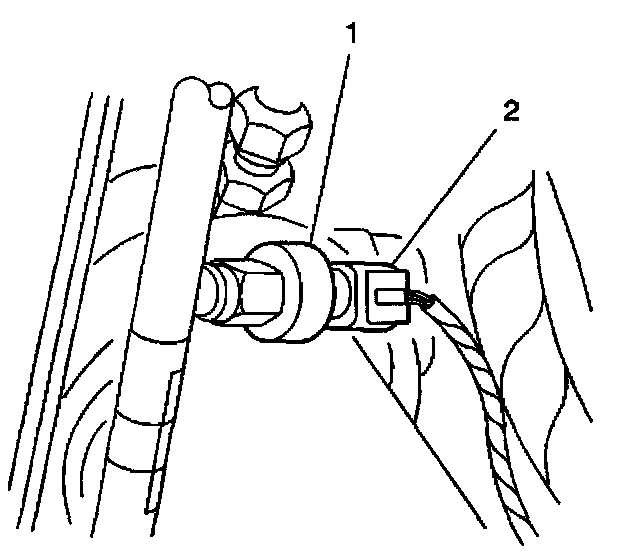 3. Disconnect the electrical connector (2) from the A/C refrigerant pressure sensor.