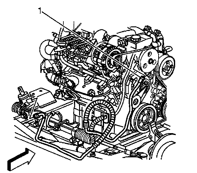 7. Remove the power steering pressure line (1) from the vehicle.