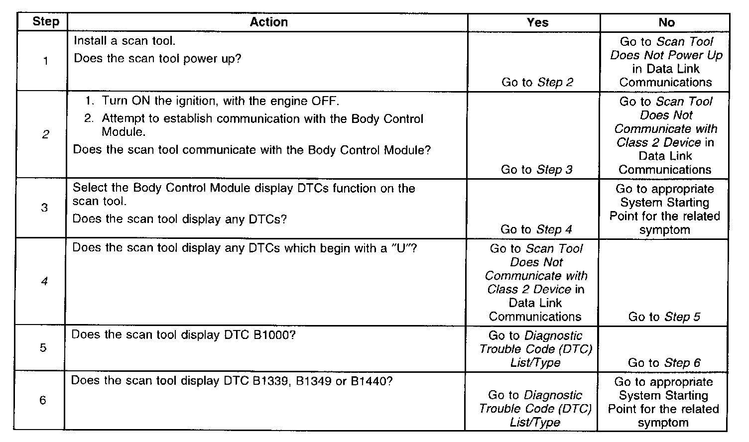 2. Lack of communication may be due to a partial malfunction of the class 2 serial data circuit or due to a total malfunction of the class 2 serial data circuit. The specified procedure will determine the particular condition.