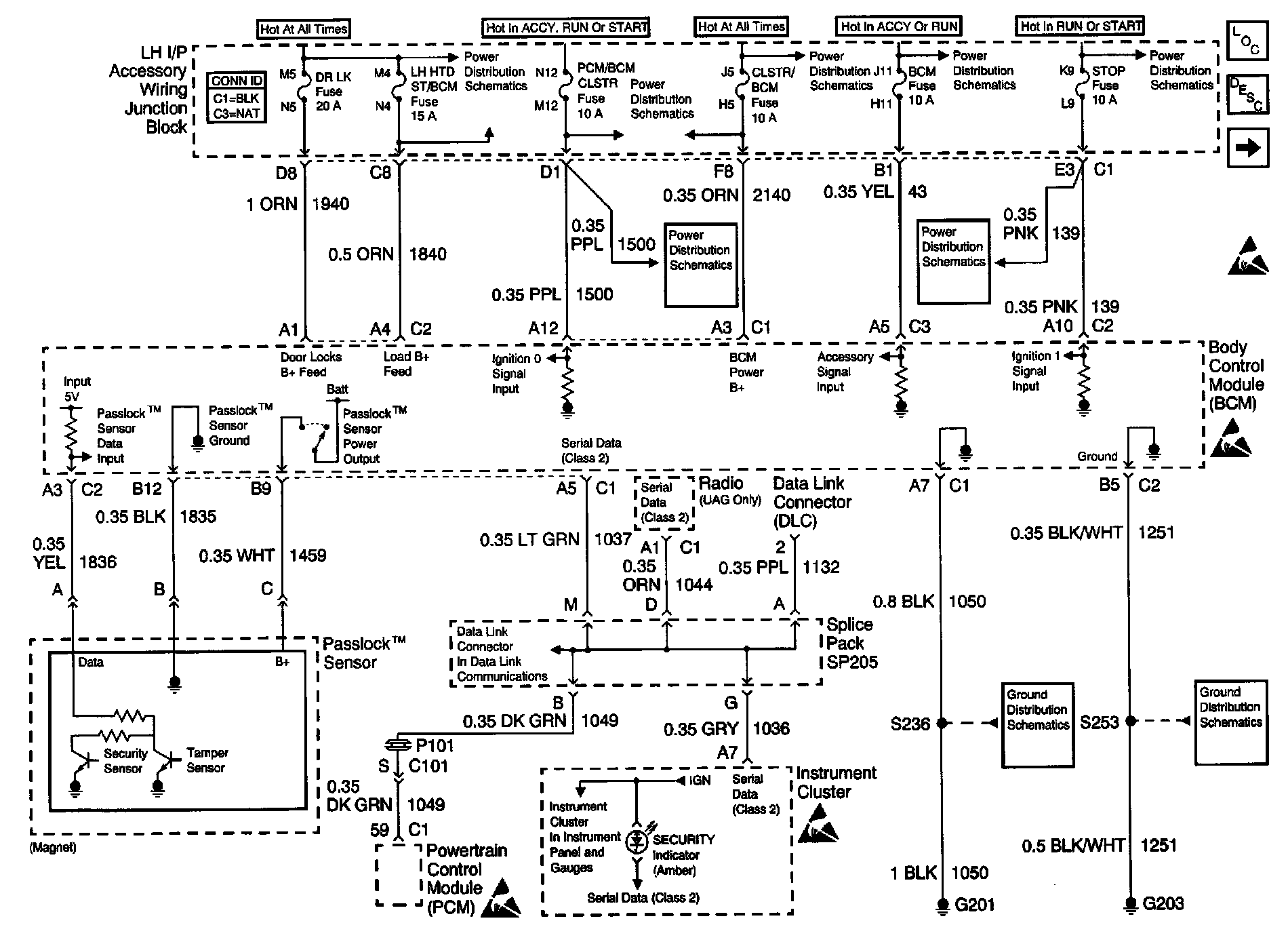Theft Deterrent System Schematics: Power/Grounds, Passlock: