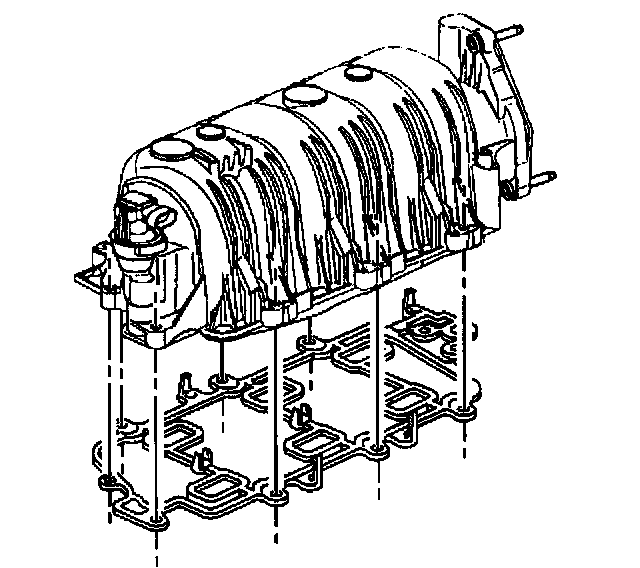 4. Carefully place the upper intake manifold onto the lower intake manifold. Make sure that the alignment pins in the upper intake manifold align with the holes in the lower intake manifold.