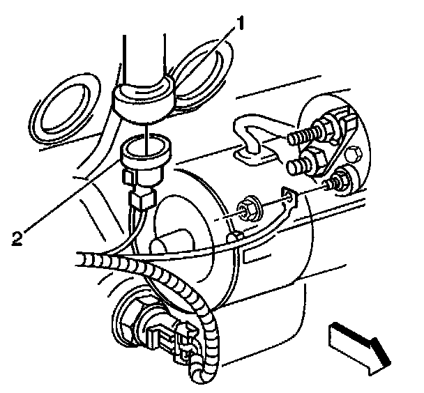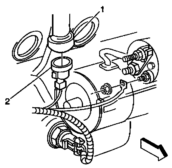 2. Connect the knock sensor electrical connector (2) to the knock sensor (1).