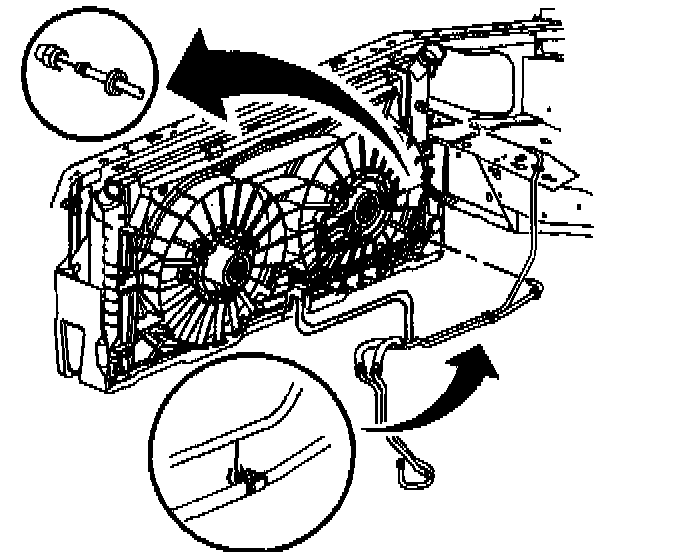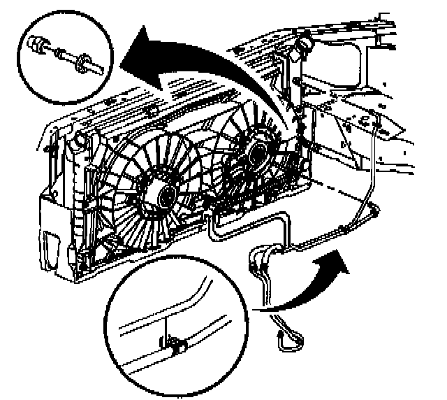 Removal ProcedureNotice: Allow sufficient clearance around the transaxle oil cooler pipes and around the hoses to prevent damage or wear which may cause fluid loss.