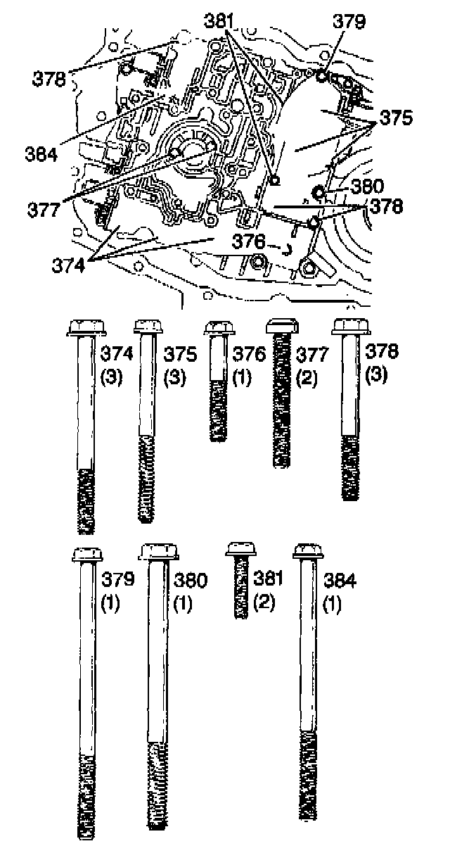 Important: Carefully remove the valve body or the ball check valves (382,373) will fall out.