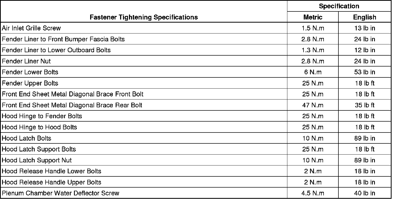 Fastener Tightening Specifications
