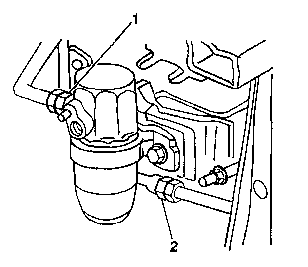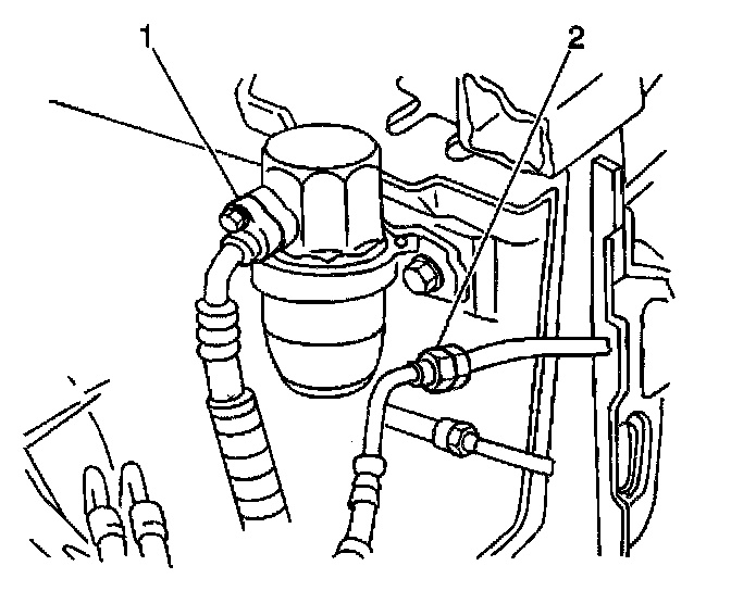 4. Remove the compressor hose nut (2) from the condenser and position the line aside.