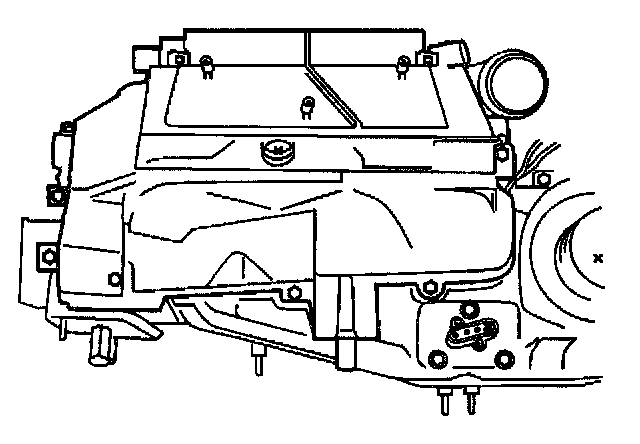 8. Remove the heater core cover bolts.