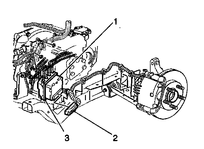 5. Disconnect the EBCM harness connector (2) from the EBCM (1).
