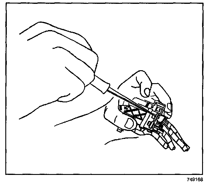 13. Press the cylinder release plunger. The release plunger is located at the four O'clock position on the ignition switch housing.