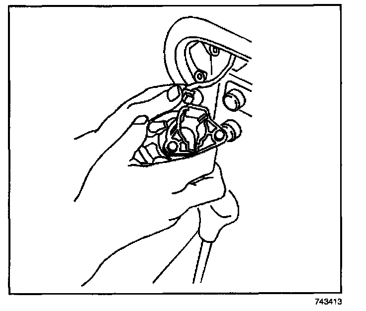 12. Depress the park lock cable tab and remove cable from the ignition switch housing.